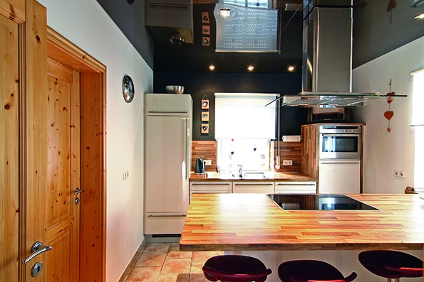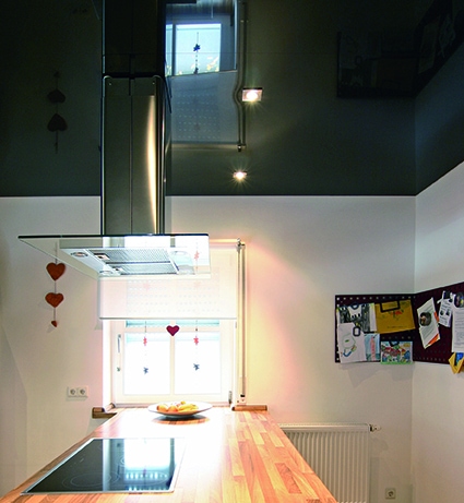The special mirror effect of high gloss stretch ceilings makes your room seem larger and higher. That’s why black stretch ceilings get often installed in small bathrooms or kitchens.