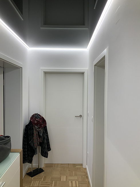 Need an inspiration for your small hallway? High gloss stretch ceilings combined with led light profiles will make your small hallway appear much larger. Create a real high light right at the entry of you home! It’s time to get a new design for your ceiling!