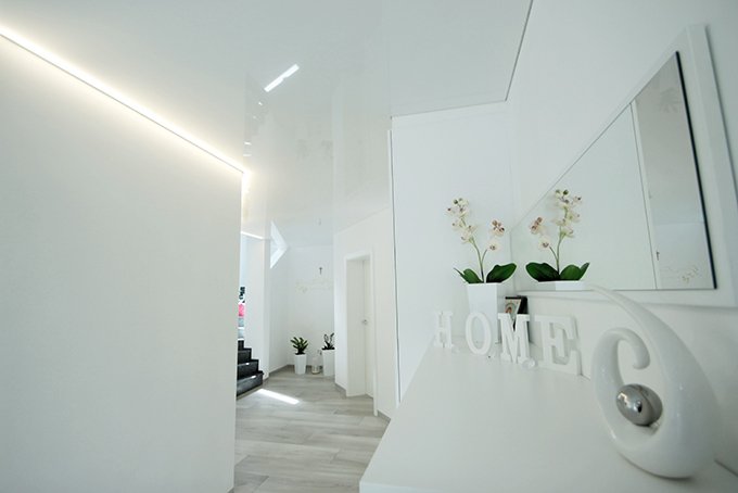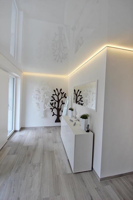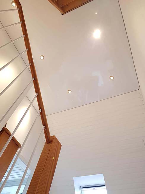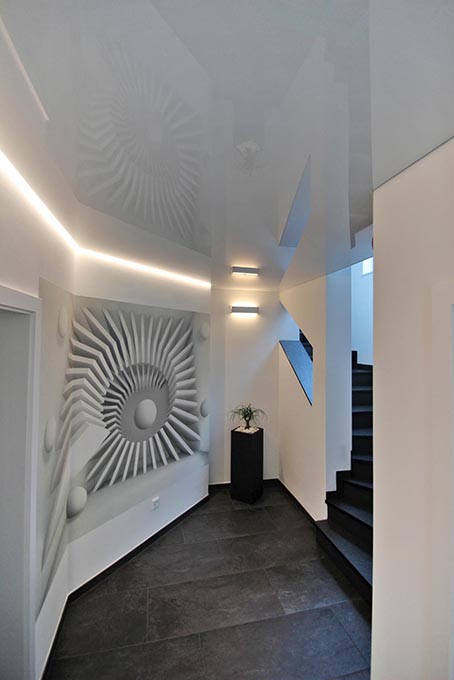 Every corridor shows a first impression of your home. A stretch ceiling helps to get an inviting first impression. Even dark and small stairways might be upgraded with stretch ceilings.