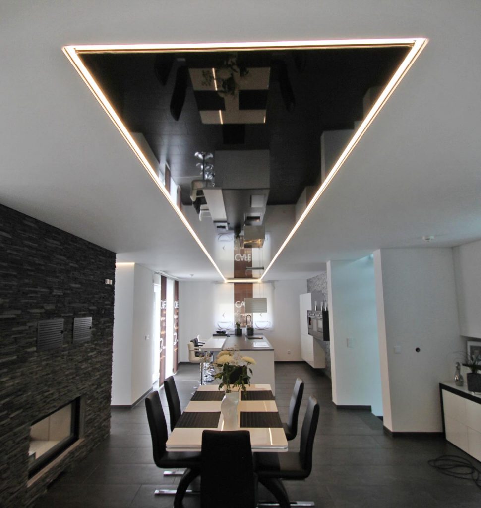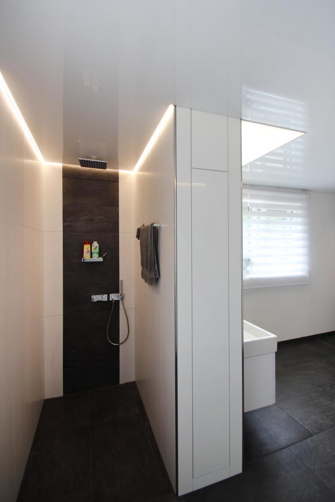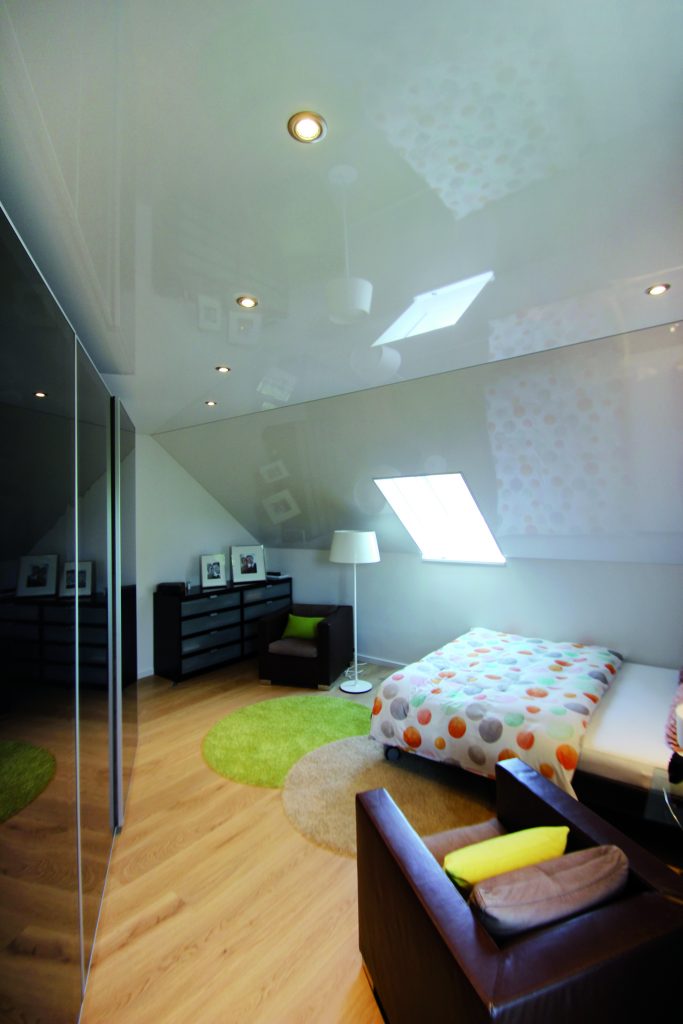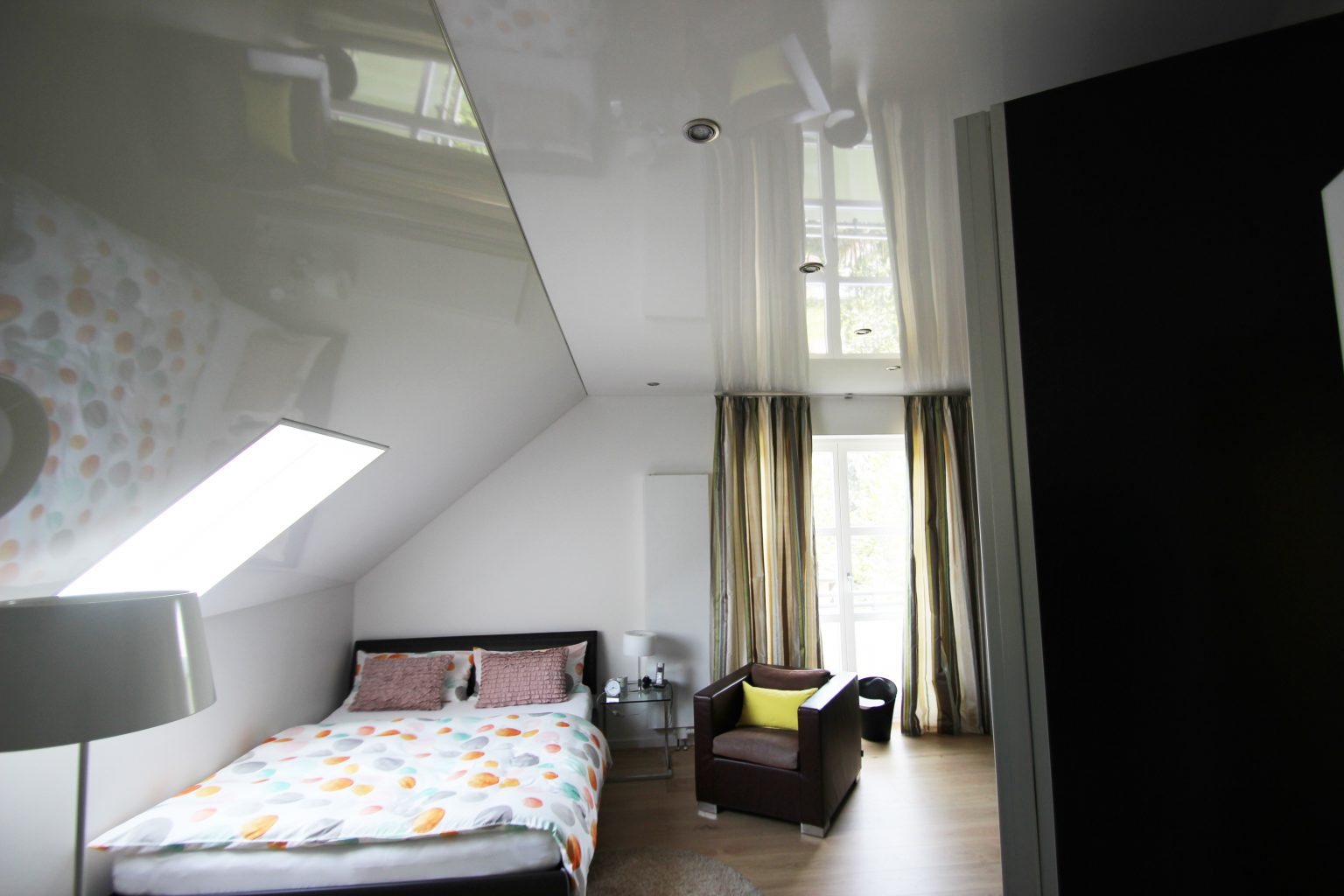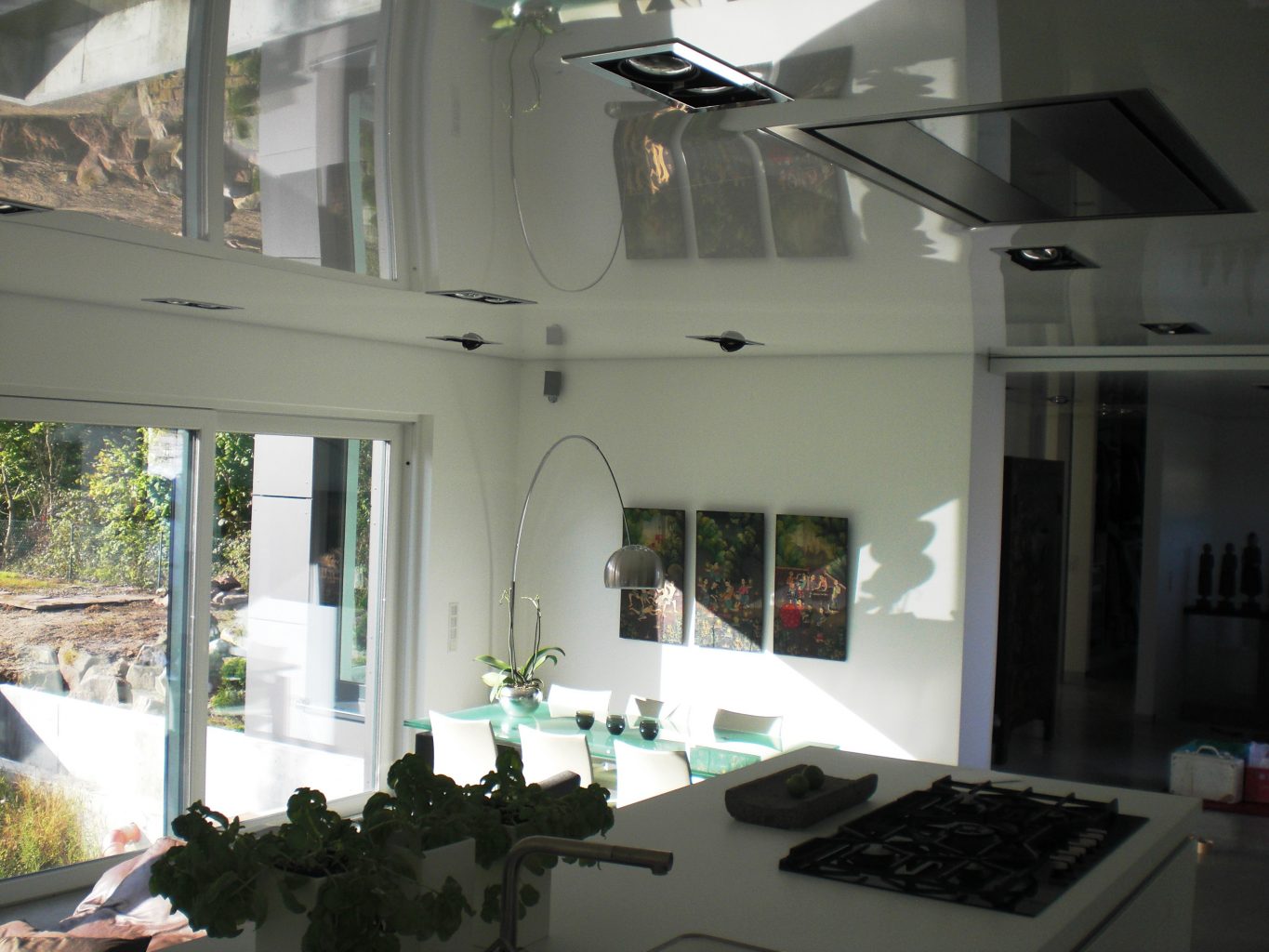 Thats why high gloss stretch ceilings are often installed in smaller rooms like bathrooms and kitchens. But lacquered stretch ceilings can also be perfectly installed for special accents in bigger rooms.