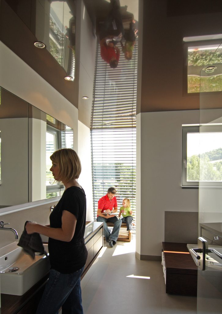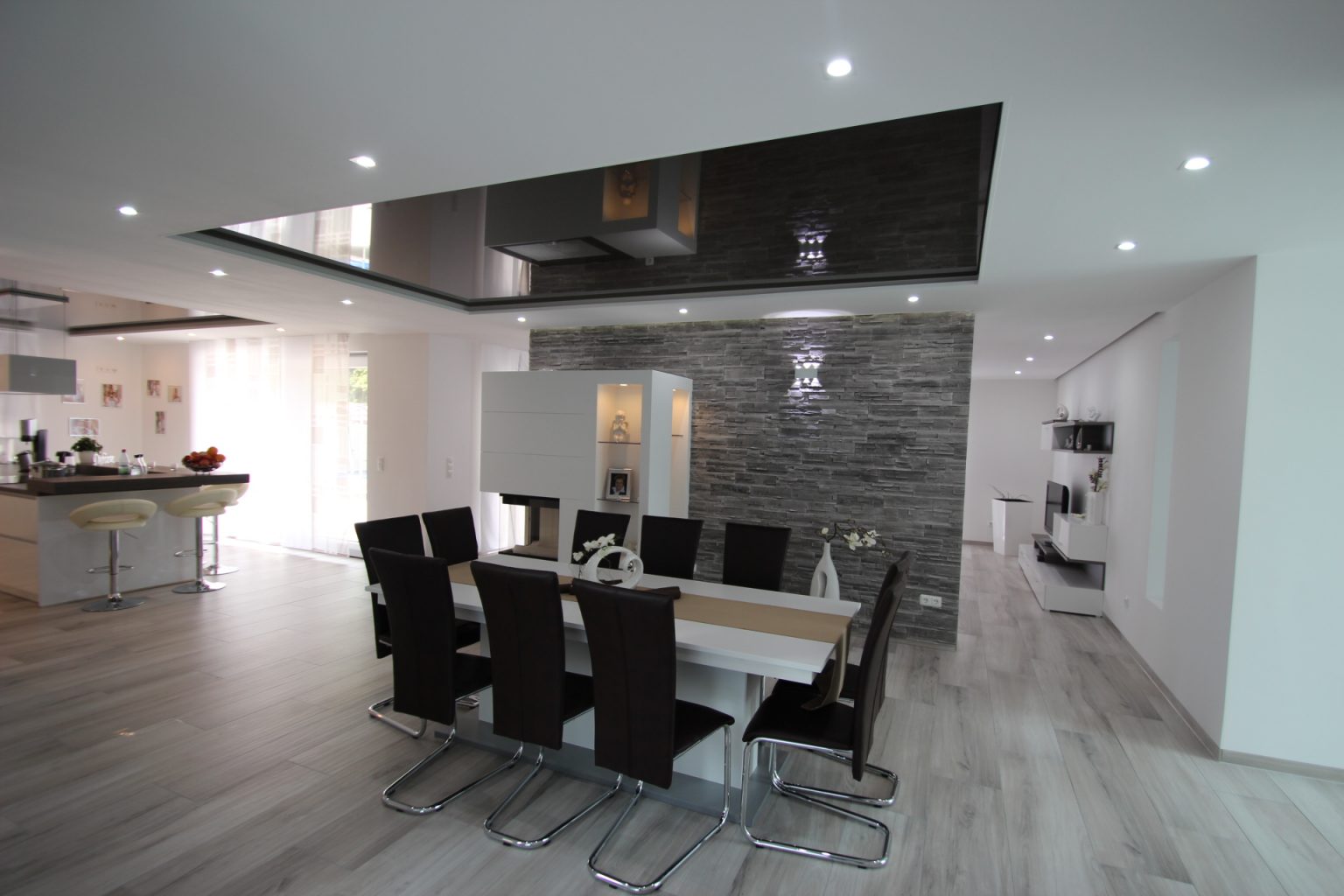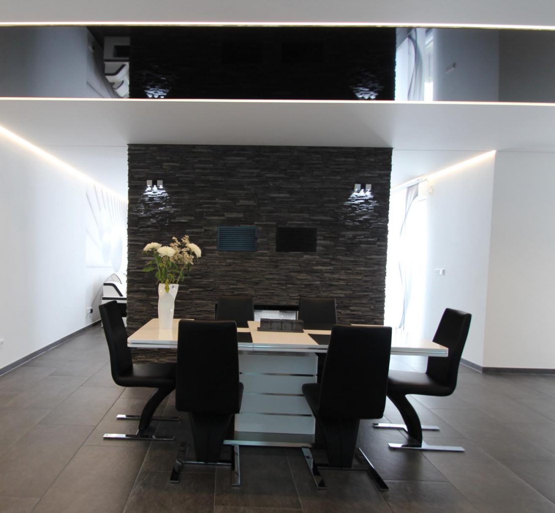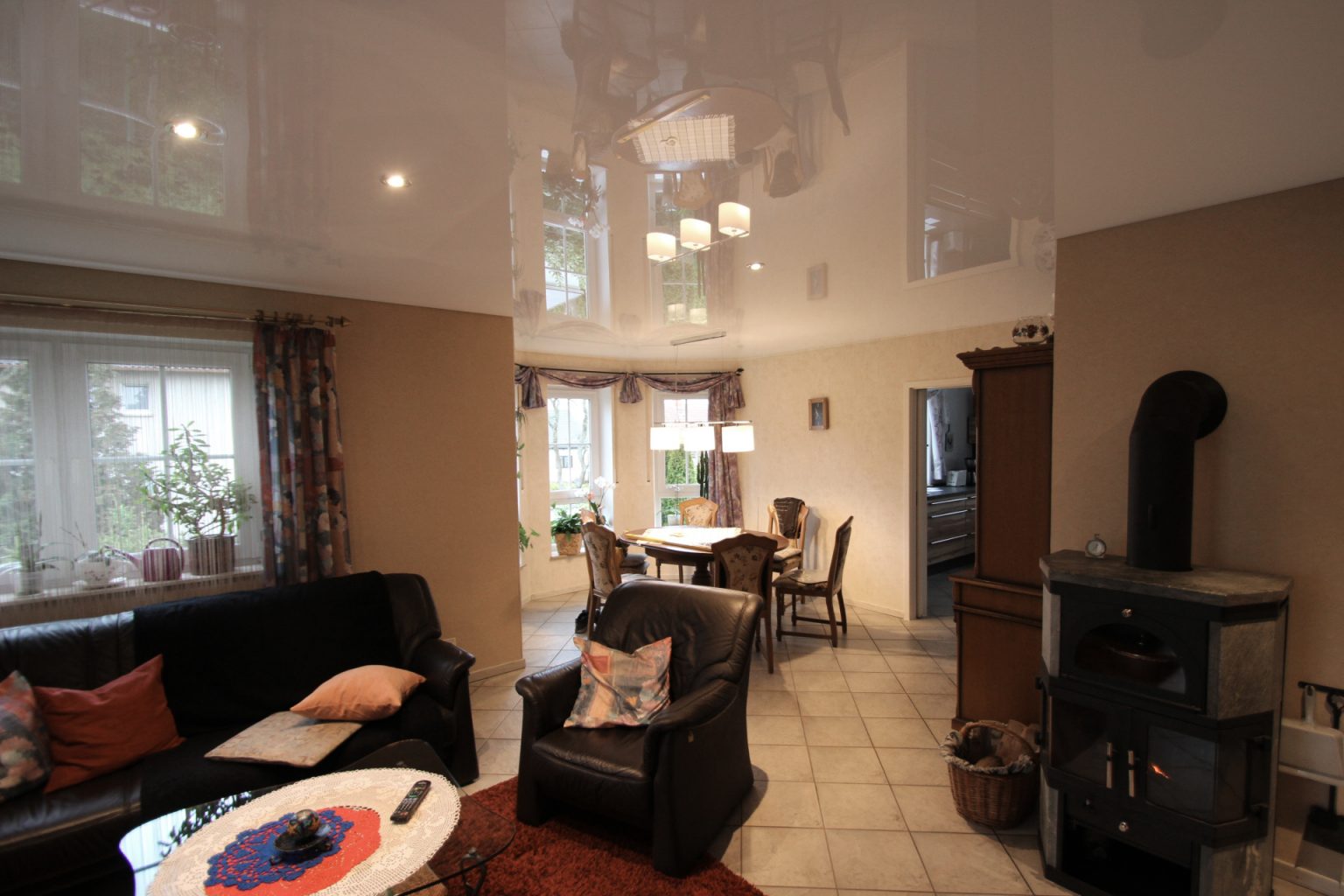 Thats why high gloss stretch ceilings are often installed in smaller rooms like bathrooms and kitchens. But lacquered stretch ceilings can also be perfectly installed for special accents in bigger rooms.