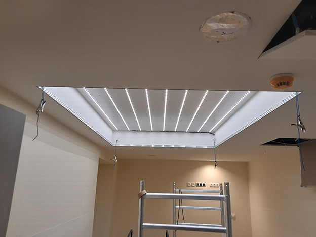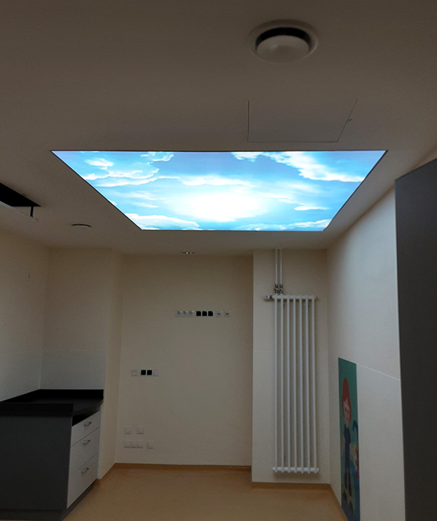 Our installation team was very busy once more! Different rooms of the hospital were fit with printed VOCIL light ceilings.