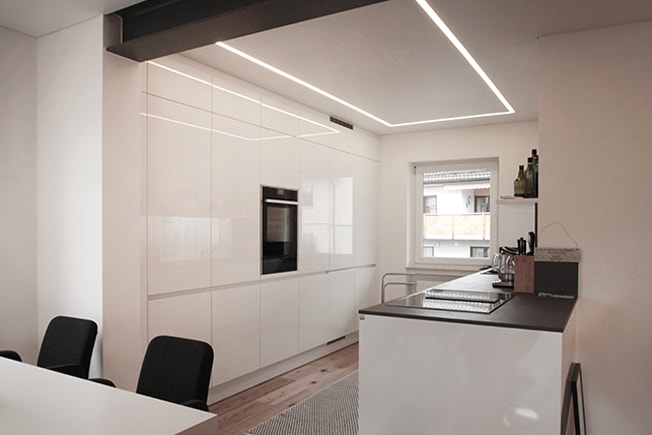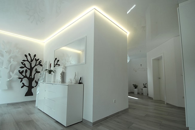 LED light without any gaps to the stretch ceiling. Individual light flow = perfect room lighting. LED strip 2300-5000 K, white- dynamic 1650lm/m.