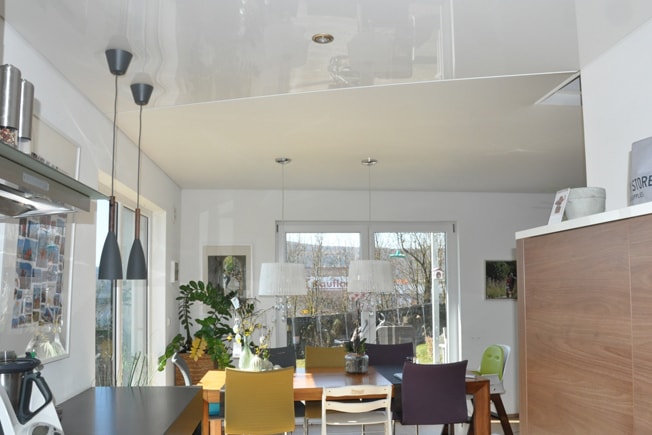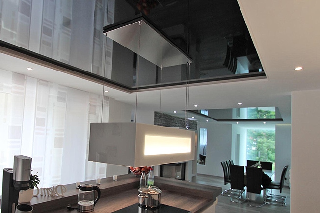 Define open rooms with different stretch ceilings. There are different combinations possible: for example with different colours or surfaces like matt-glossy.