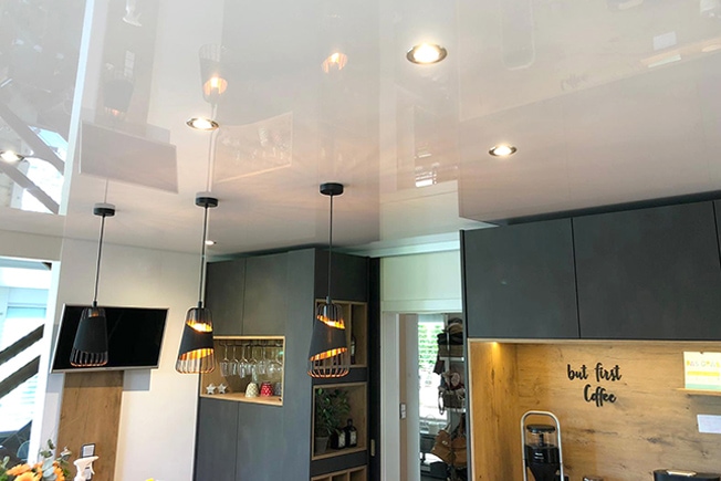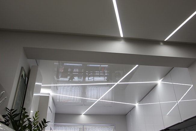 Great combination of light- and stretch ceilings.