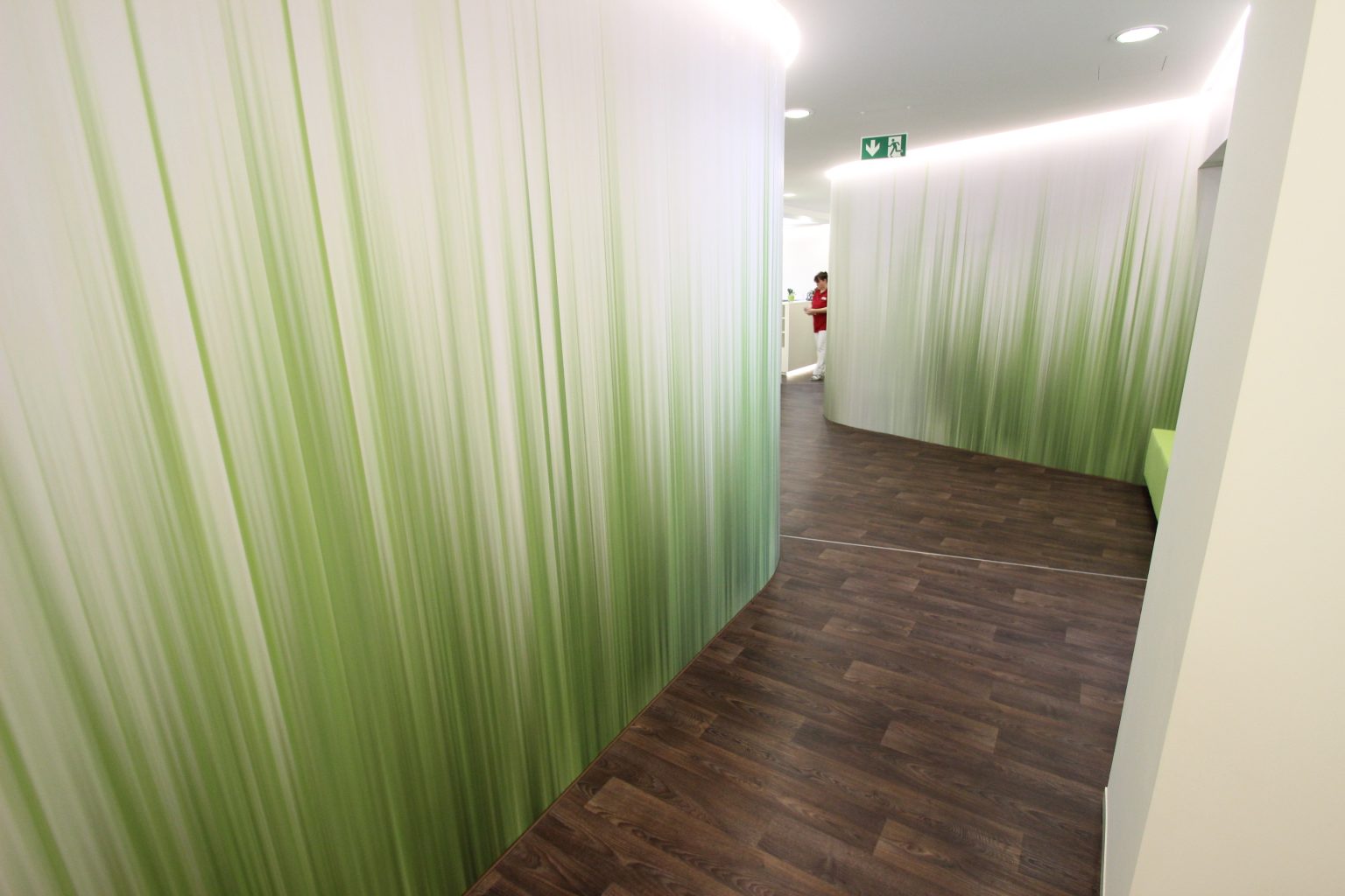 Stretch ceilings may perfectly be used as wall paneling. Especially printed and backlighted stretch ceilings on walls may create a unique design and eyecatcher.
