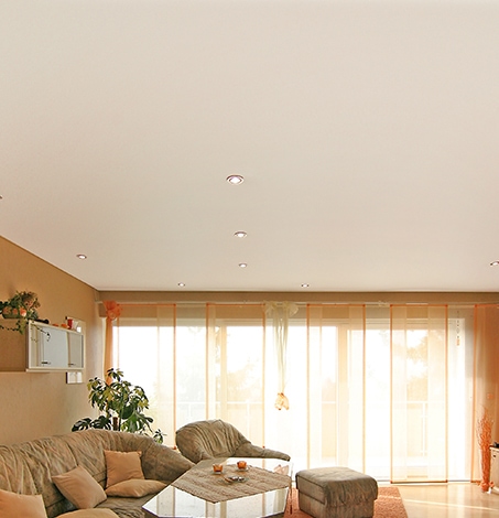 Simply elegant, modern and bright – matt stretch ceilings create a special room feeling and suit perfectly in every room. We have more than 30 years of experience and can show further technical developpment. There is no limits to the intigration of lights, smoke alarms, hooods, etc. Even attic hatches are realizable.