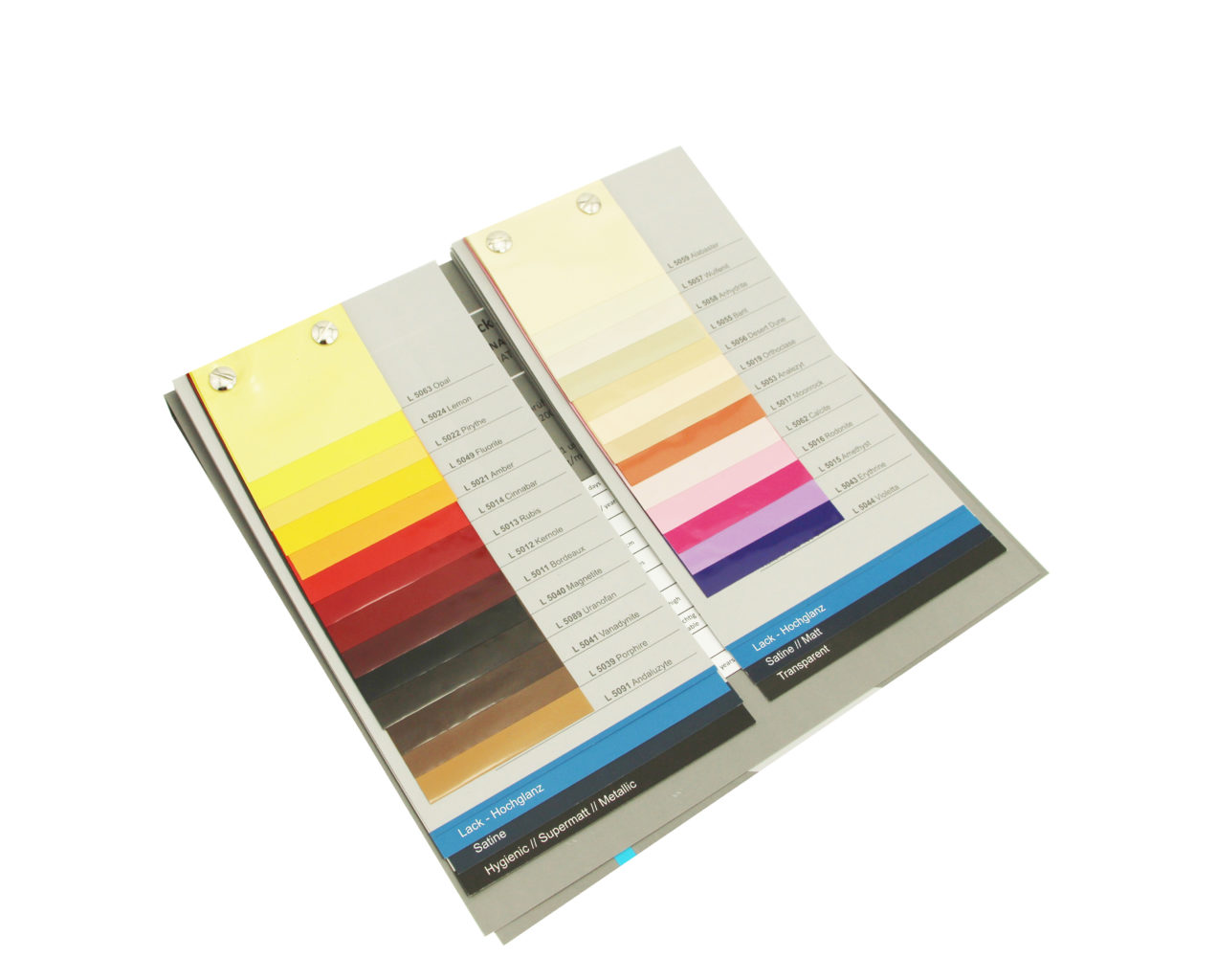 We offer in our colour card many different foils: high gloss, matt/satined , transclucent for light ceilings, hygienic for special requirements and foils with metallic finish.