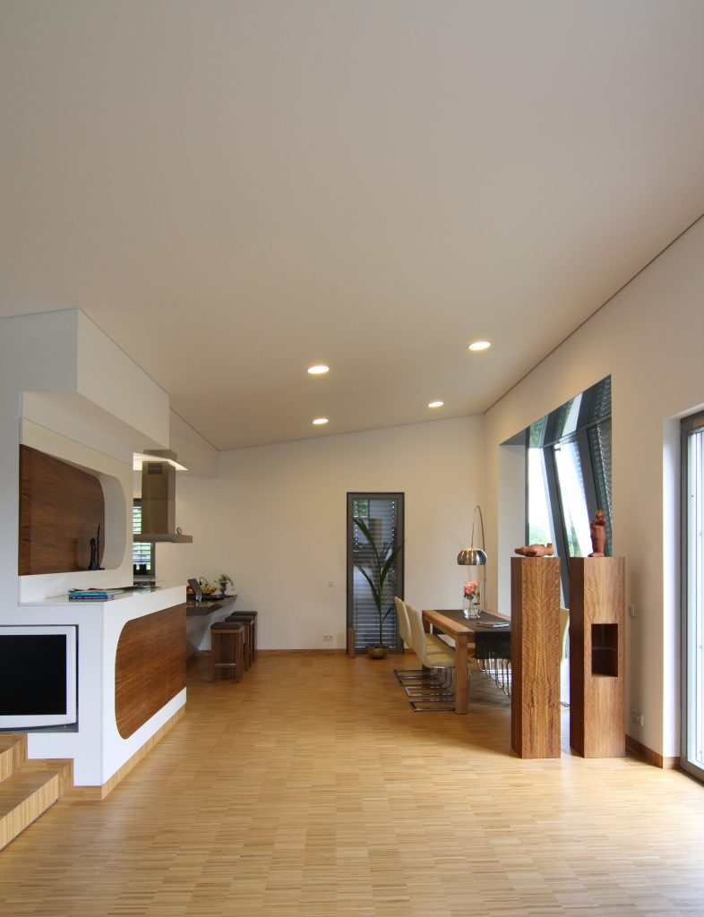 Matte Spanndecken – sind die moderne und saubere Lösung für die Deckengestaltung. Gerade im Bereich vom offenen Wohnen können Sie dezent durch unterschiedliche Deckenoberflächen oder Farben optische Abtrennungen schaffen. Gestalten Sie z.B. den Küchenbereich mit einer Lackdecke und den angrenzenden Ess- und Wohnbereich mit einer matten Decke. Sie werden von der neuen Wohnraumatmosphäre begeistert sein!