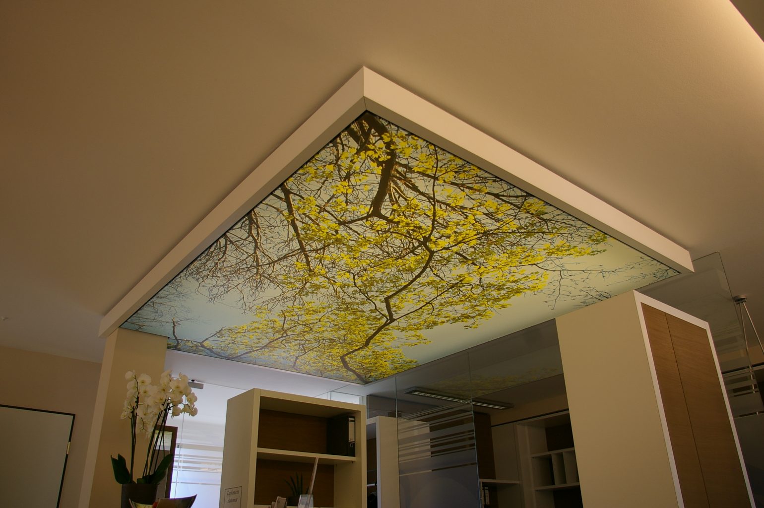 Bedruckte Lichtdecken setzen den Spanndecken die Krone auf. Allein die Vorstellung, ein Motiv nach eigener Vorlage gedruckt auf einer Lichtdecke mit flächiger Beleuchtung zu besitzen, ist einzigartig und wird zu Ihrem Unikat. Durch die hohe Qualität der Printmedien ist das Bedrucken einer Lichtfolie in höchster Schärfe möglich. Mit der heutigen Technik wird Ihr Lieblingsbild zu Leben erweckt.
