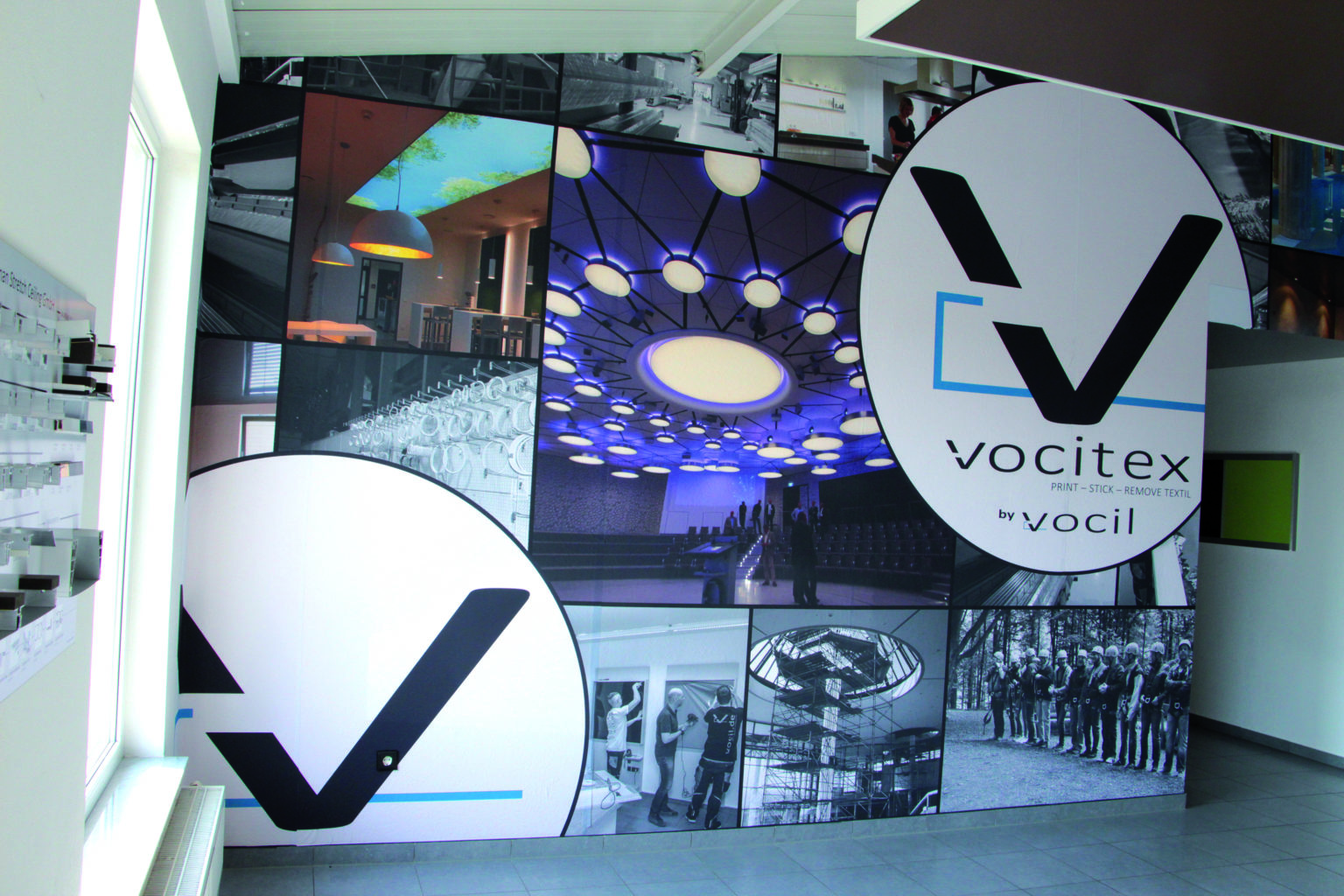 VOCITEX einfach auf einer glatten Oberfläche aufkleben – fertig. Das Klebetextil kann immer wieder neu positioniert werden oder ausgetauscht werden.