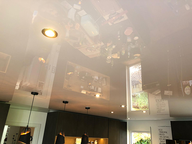 The glossy stretch ceiling provides your office with a modern touch and helps to reach a brighter and elegant atmosphere!